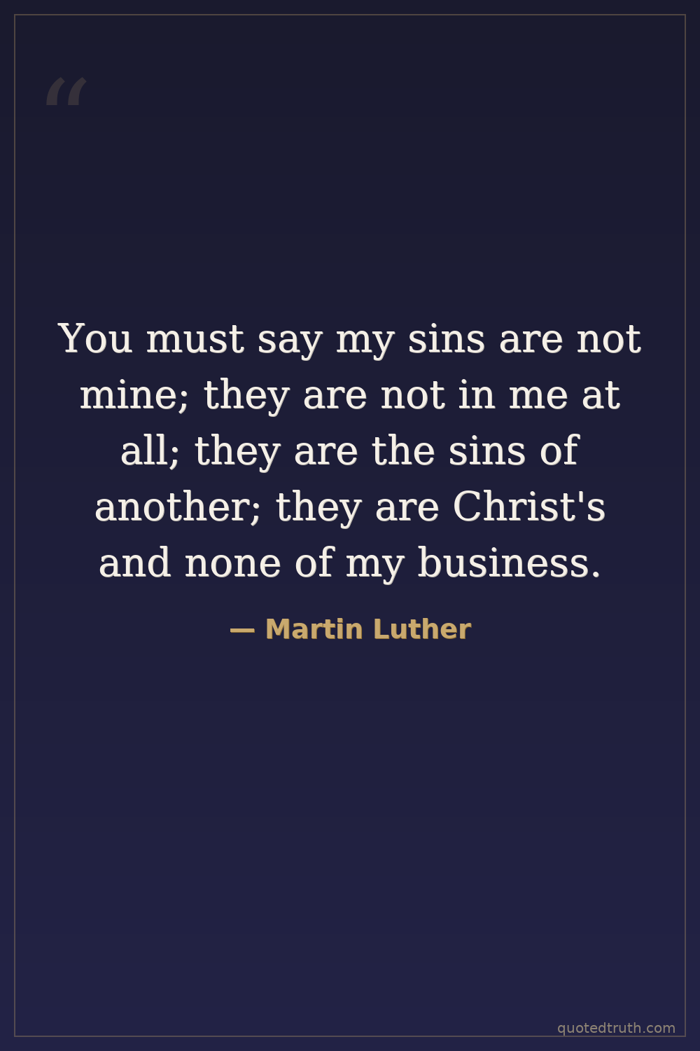 You must say my sins are not mine; they are not in me at all; they are the sins of another; they are Christ's and none of my business.