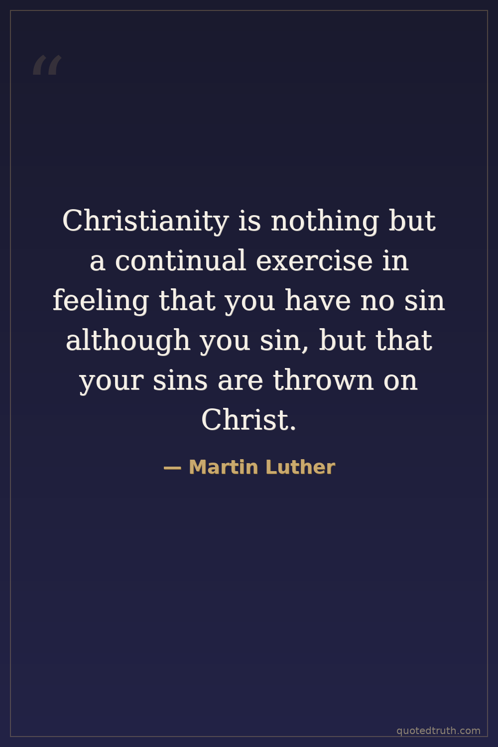 Christianity is nothing but a continual exercise in feeling that you have no sin although you sin, but that your sins are thrown on Christ.
