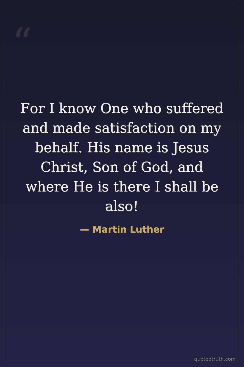 For I know One who suffered and made satisfaction on my behalf. His name is Jesus Christ, Son of God, and where He is there I shall be also!