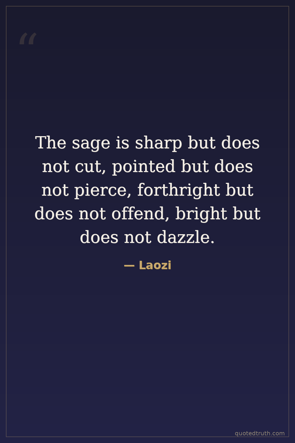 The sage is sharp but does not cut, pointed but does not pierce, forthright but does not offend, bright but does not dazzle.
