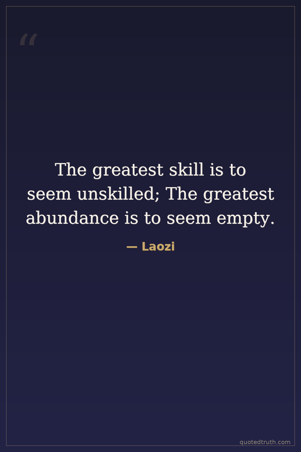 The greatest skill is to seem unskilled; The greatest abundance is to seem empty.