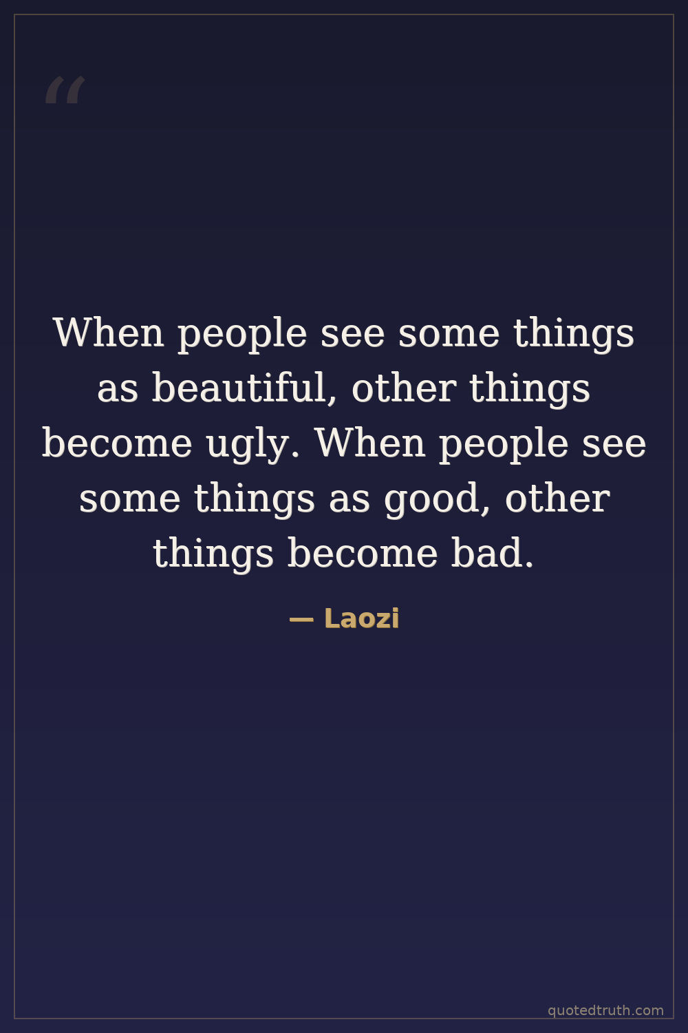 When people see some things as beautiful, other things become ugly. When people see some things as good, other things become bad.
