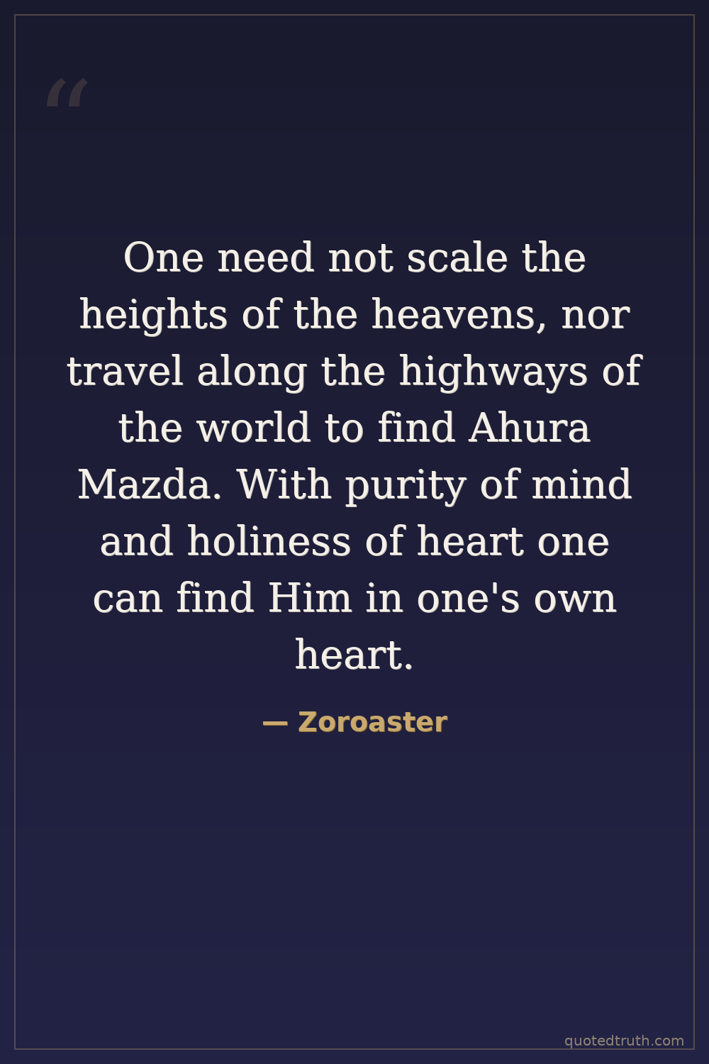 One need not scale the heights of the heavens, nor travel along the highways of the world to find Ahura Mazda. With purity of mind and holiness of heart one can find Him in one's own heart.