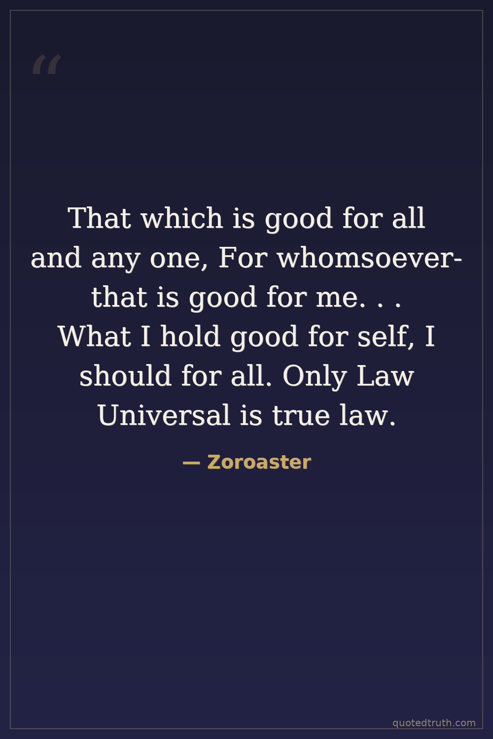 That which is good for all and any one, For whomsoever- that is good for me. . . What I hold good for self, I should for all. Only Law Universal is true law.