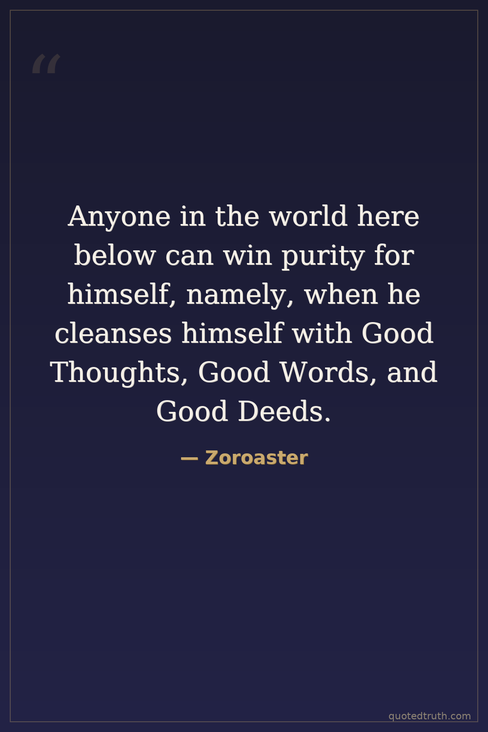 Anyone in the world here below can win purity for himself, namely, when he cleanses himself with Good Thoughts, Good Words, and Good Deeds.