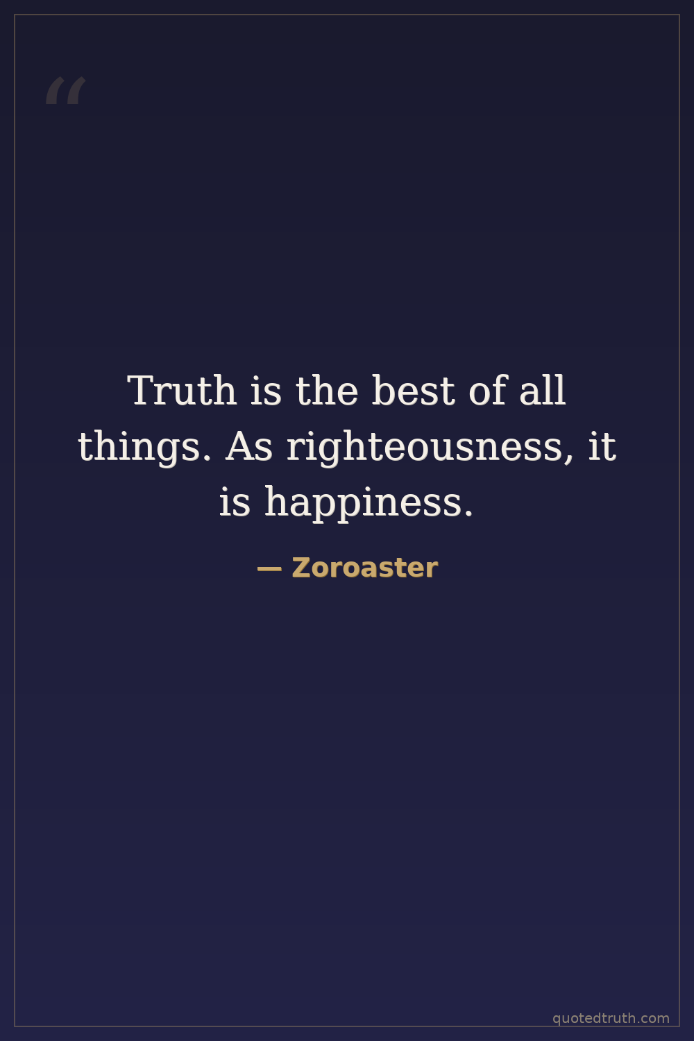 Truth is the best of all things. As righteousness, it is happiness.