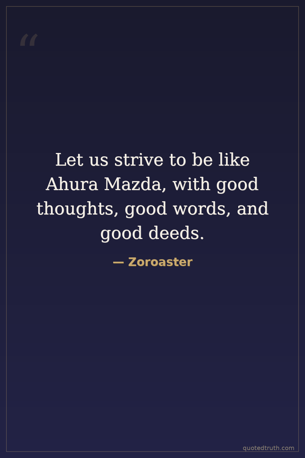 Let us strive to be like Ahura Mazda, with good thoughts, good words, and good deeds.