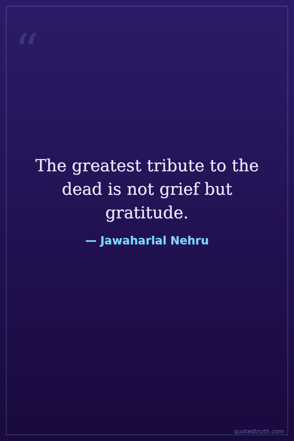 The greatest tribute to the dead is not grief but gratitude.
