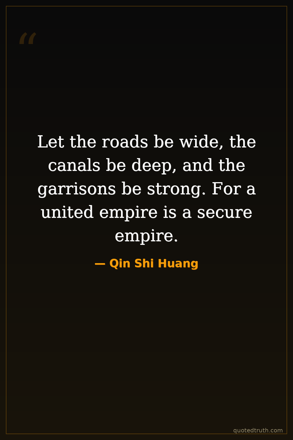 Let the roads be wide, the canals be deep, and the garrisons be strong. For a united empire is a secure empire.