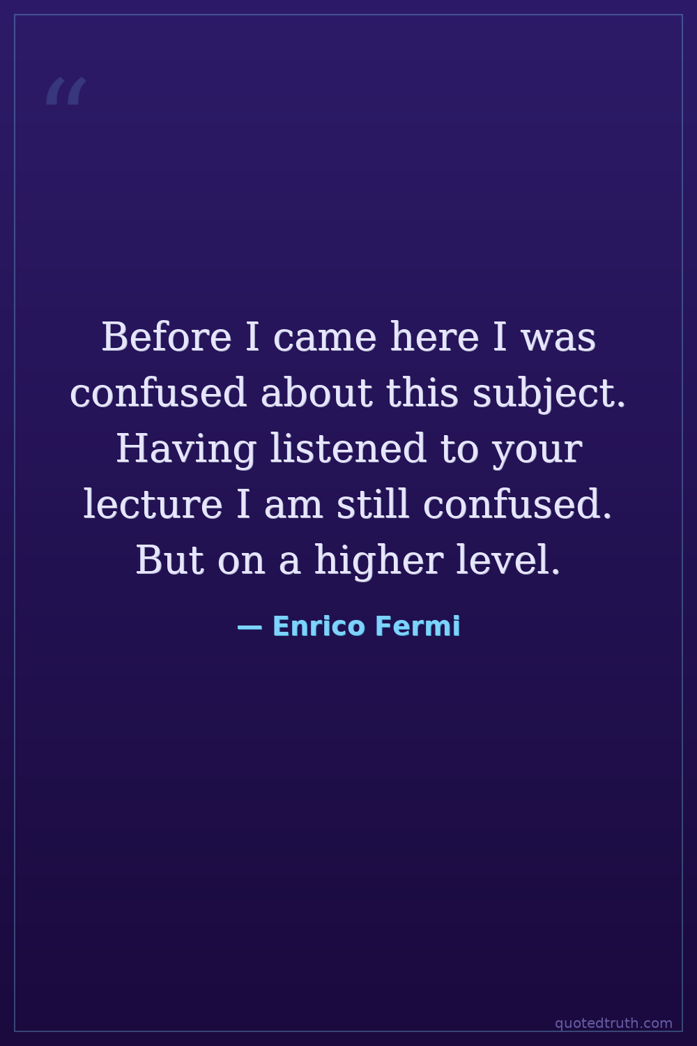 Before I came here I was confused about this subject. Having listened to your lecture I am still confused. But on a higher level.