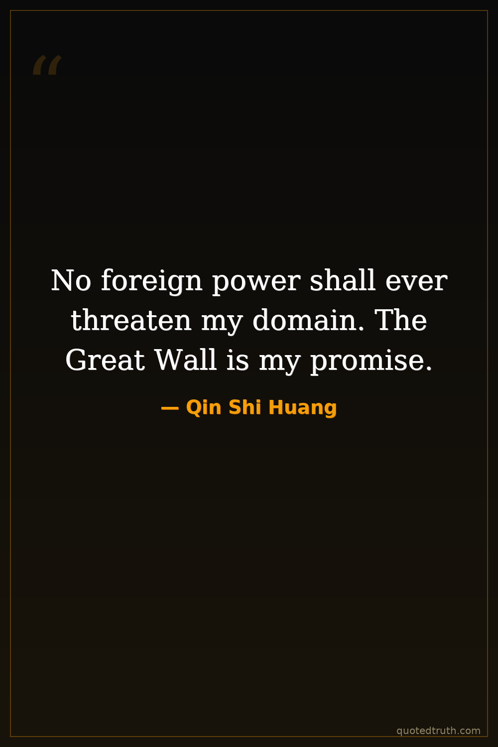 No foreign power shall ever threaten my domain. The Great Wall is my promise.