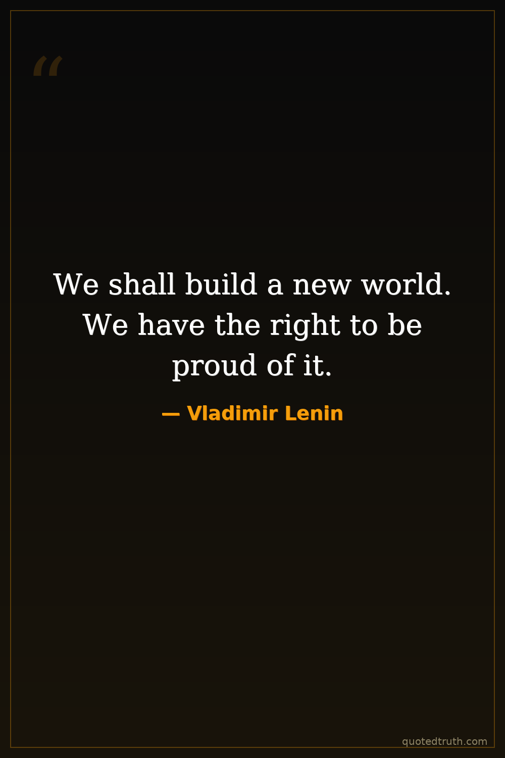 We shall build a new world. We have the right to be proud of it.