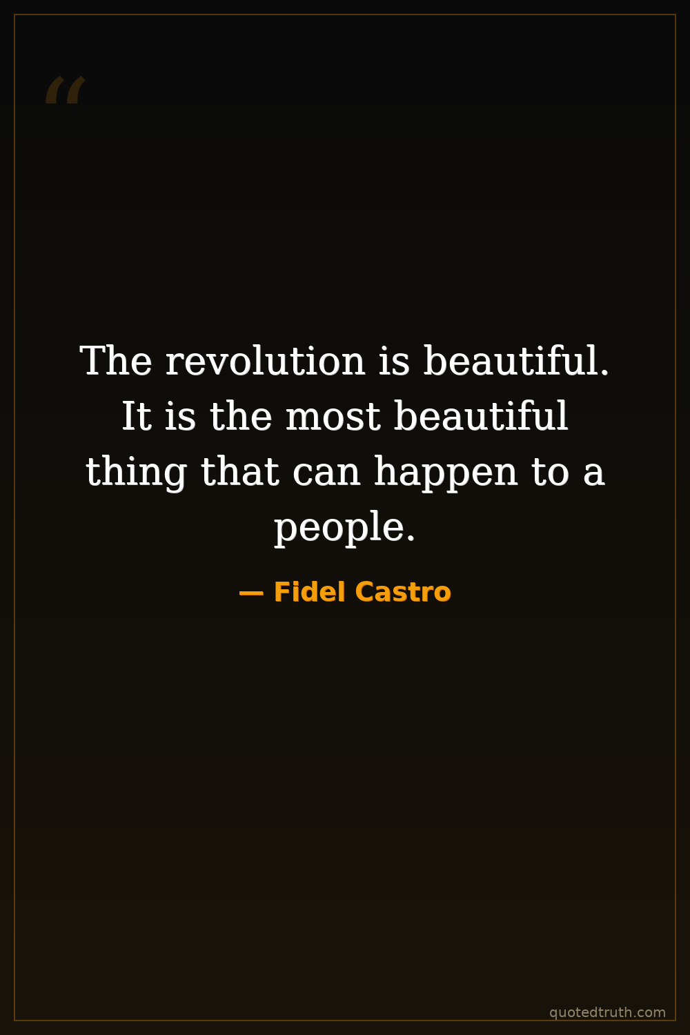 The revolution is beautiful. It is the most beautiful thing that can happen to a people.