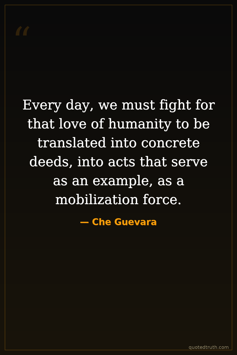 Every day, we must fight for that love of humanity to be translated into concrete deeds, into acts that serve as an example, as a mobilization force.
