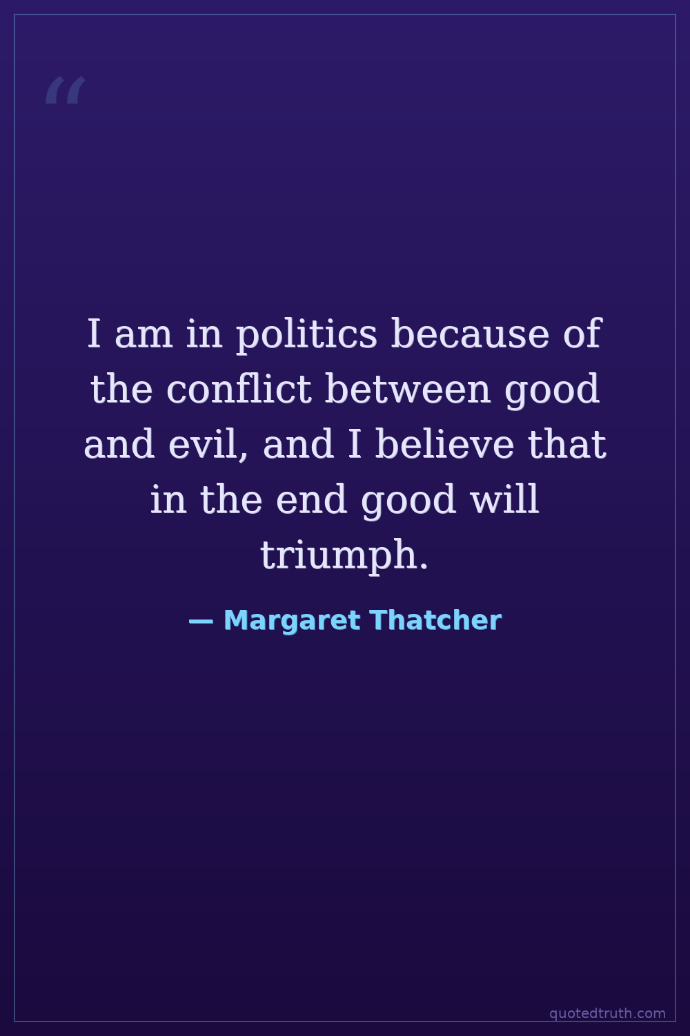 I am in politics because of the conflict between good and evil, and I believe that in the end good will triumph.