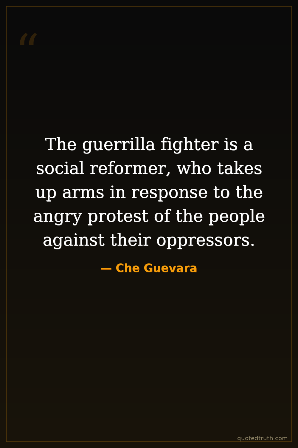 The guerrilla fighter is a social reformer, who takes up arms in response to the angry protest of the people against their oppressors.