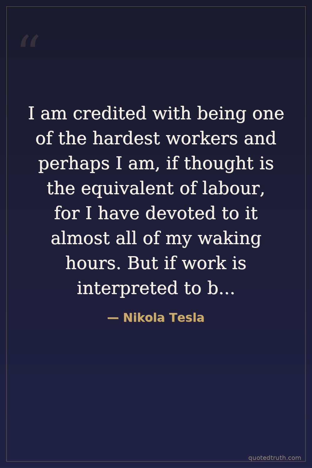 I am credited with being one of the hardest workers and perhaps I am, if thought is the equivalent of labour, for I have devoted to it almost all of my waking hours. But if work is interpreted to be a definite performance in a specified time according to a rigid rule, then I may be the worst of idlers.