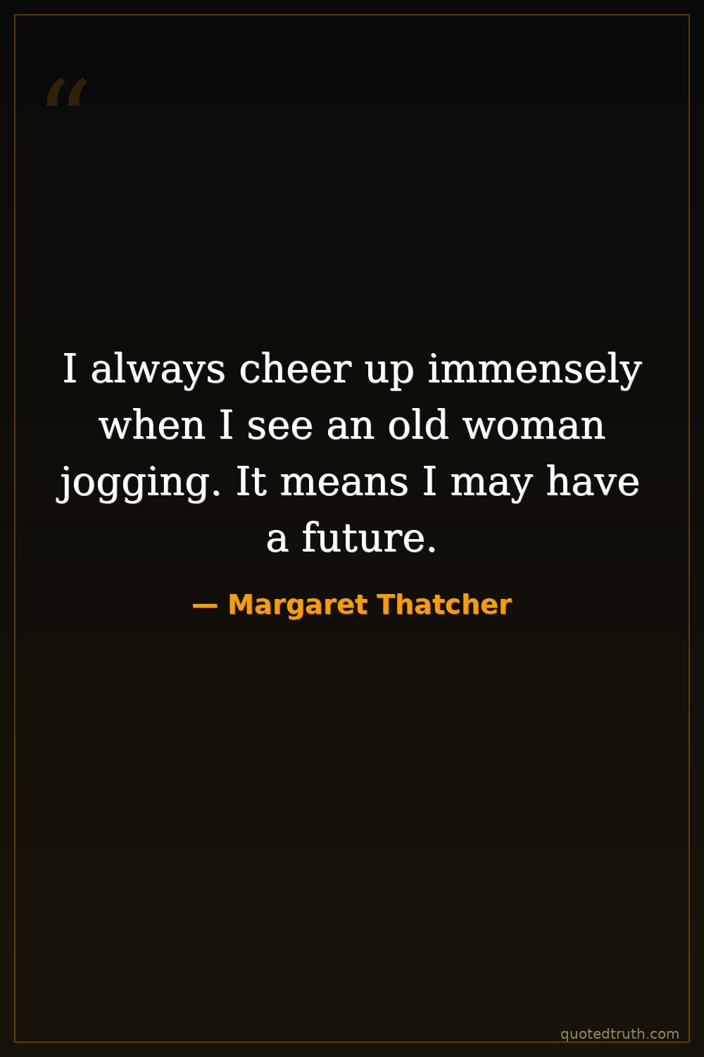 I always cheer up immensely when I see an old woman jogging. It means I may have a future.