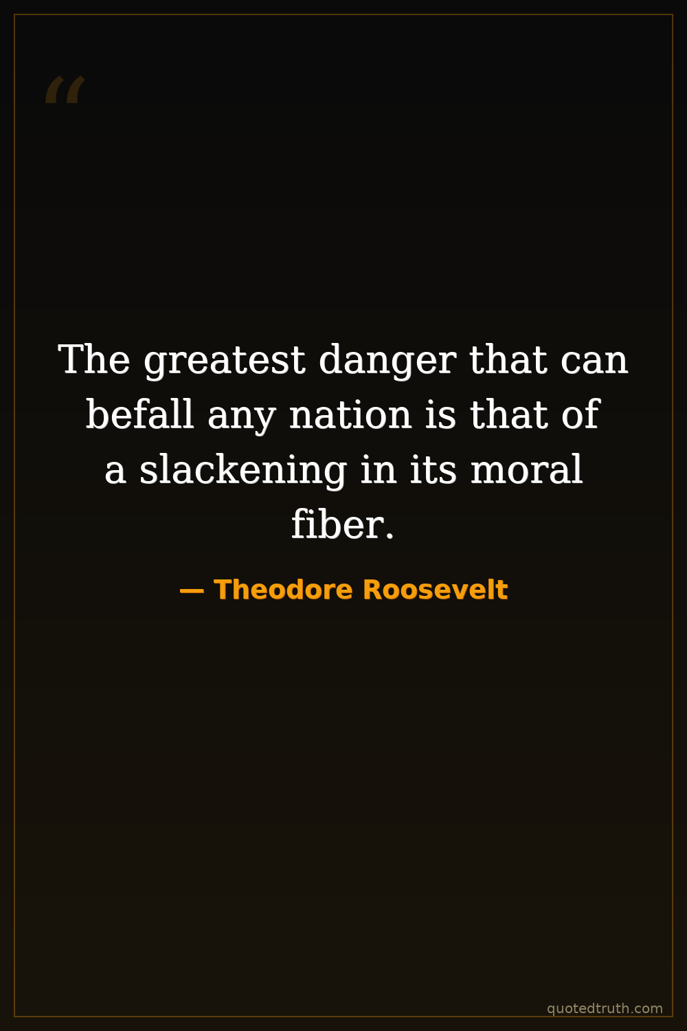 The greatest danger that can befall any nation is that of a slackening in its moral fiber.