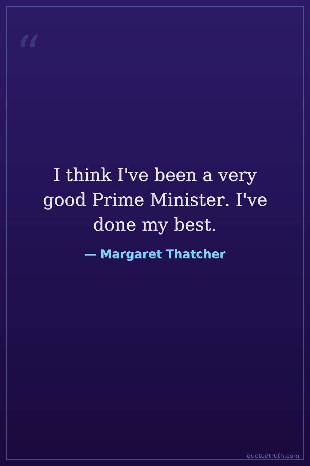 I think I've been a very good Prime Minister. I've done my best.