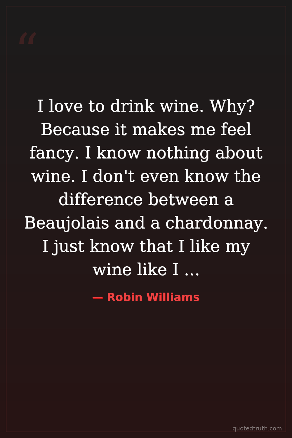 I love to drink wine. Why? Because it makes me feel fancy. I know nothing about wine. I don't even know the difference between a Beaujolais and a chardonnay. I just know that I like my wine like I like my women: ready to pass out.