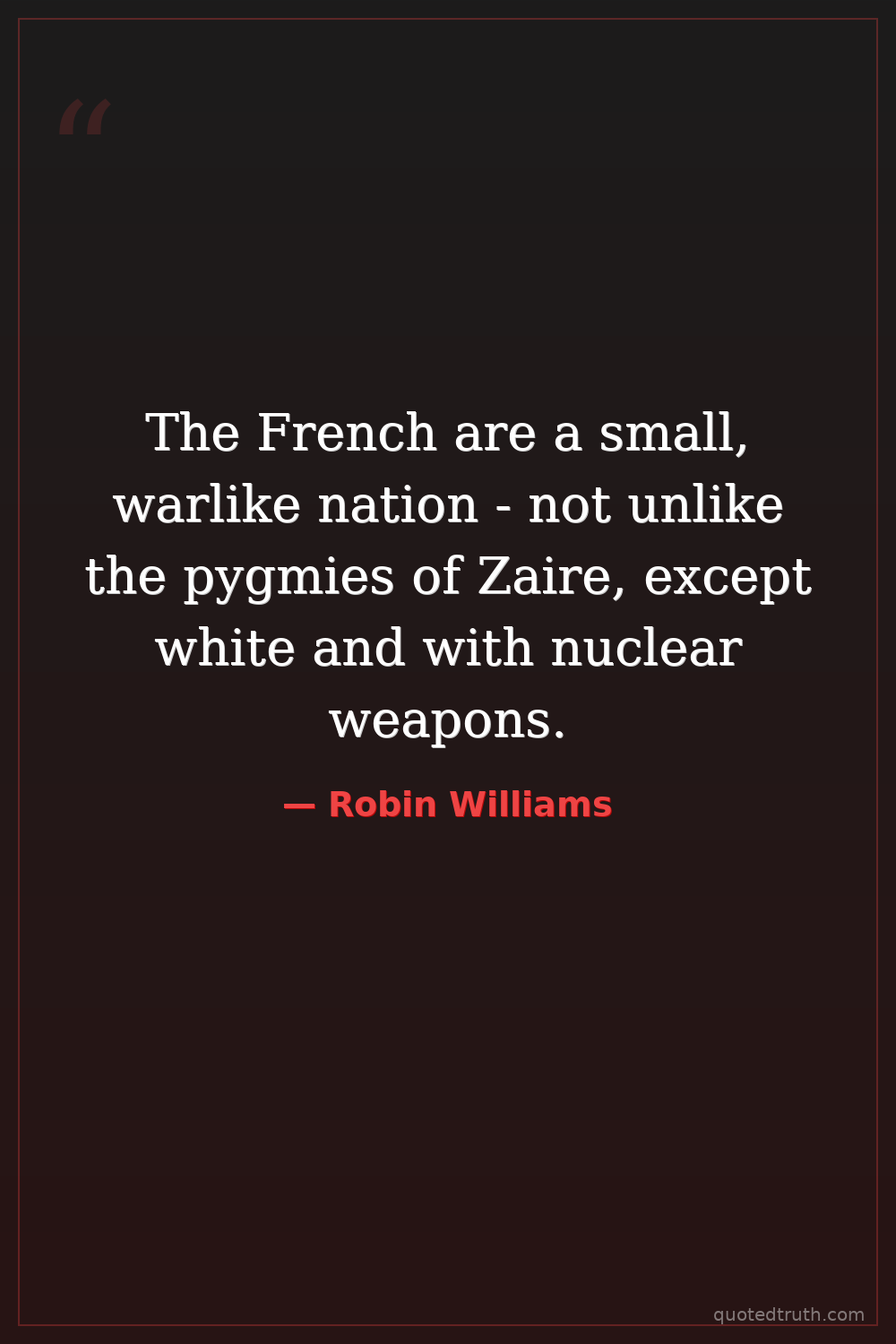 The French are a small, warlike nation - not unlike the pygmies of Zaire, except white and with nuclear weapons.