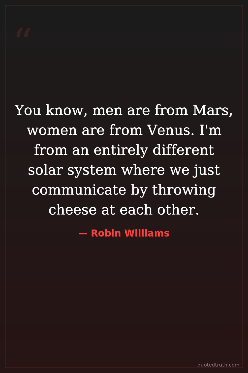 You know, men are from Mars, women are from Venus. I'm from an entirely different solar system where we just communicate by throwing cheese at each other.