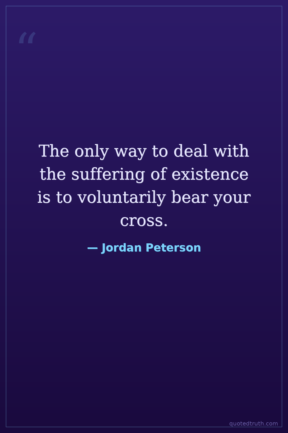 The only way to deal with the suffering of existence is to voluntarily bear your cross.