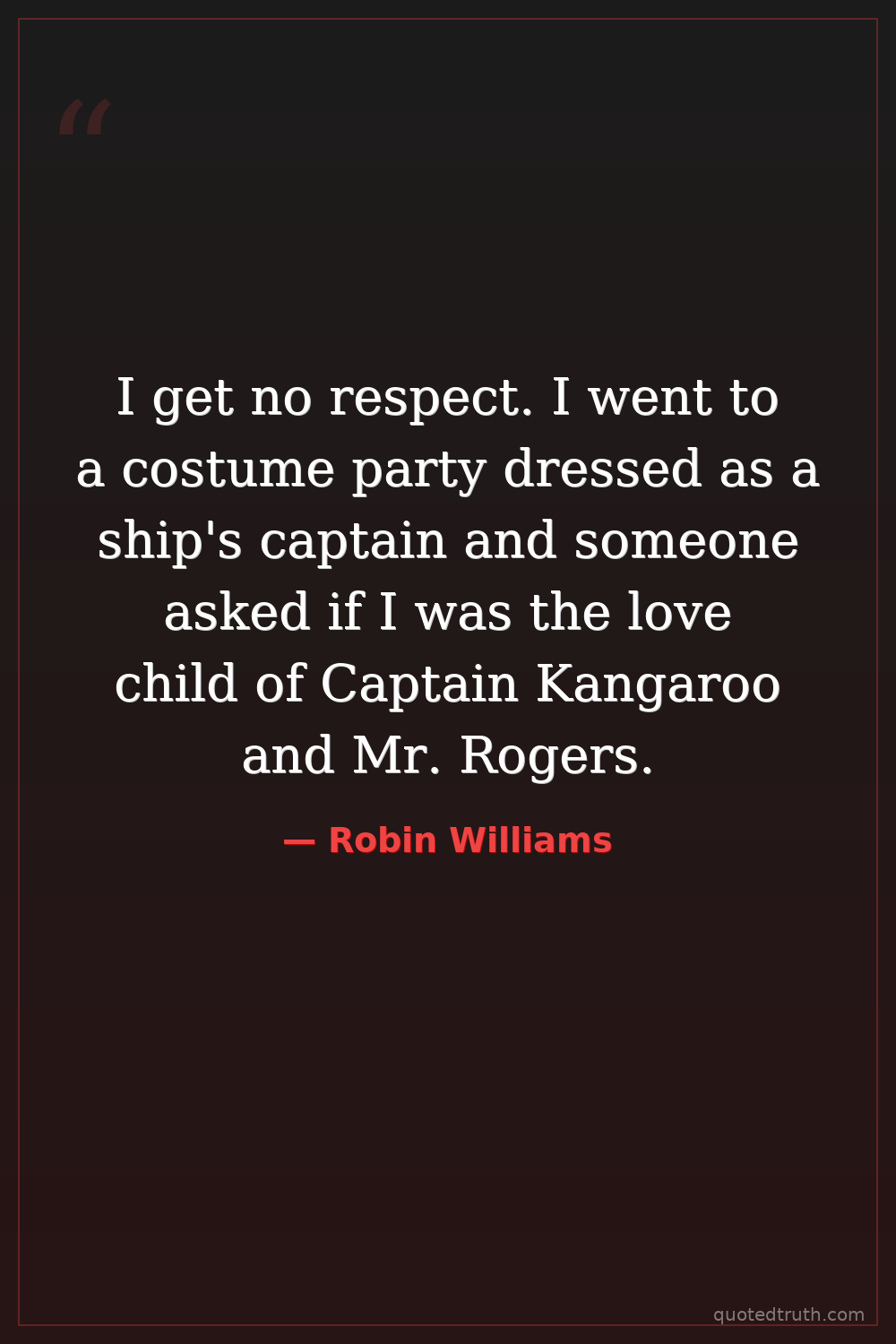 I get no respect. I went to a costume party dressed as a ship's captain and someone asked if I was the love child of Captain Kangaroo and Mr. Rogers.