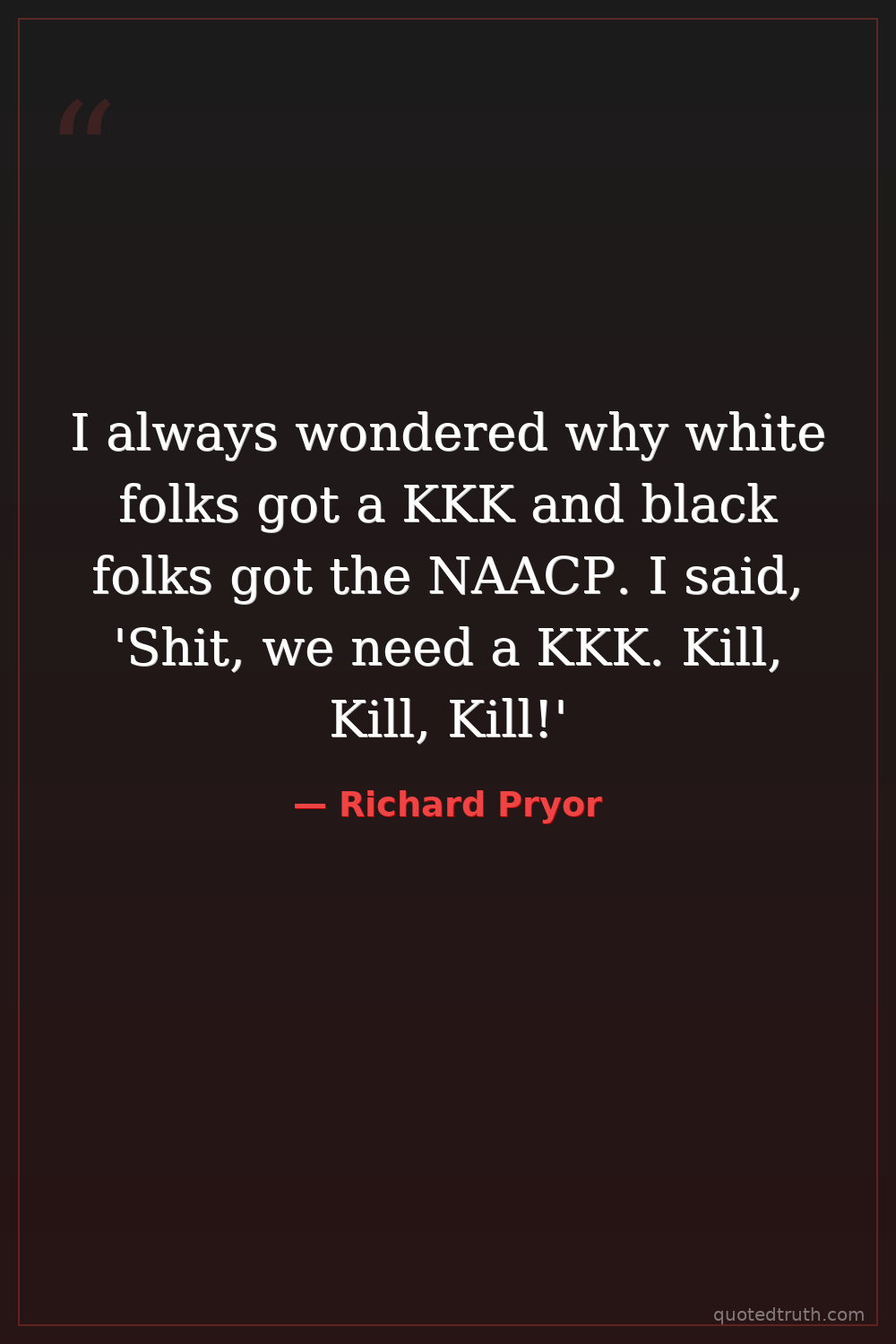I always wondered why white folks got a KKK and black folks got the NAACP. I said, 'Shit, we need a KKK. Kill, Kill, Kill!'