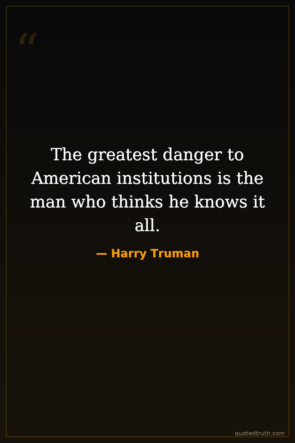 The greatest danger to American institutions is the man who thinks he knows it all.
