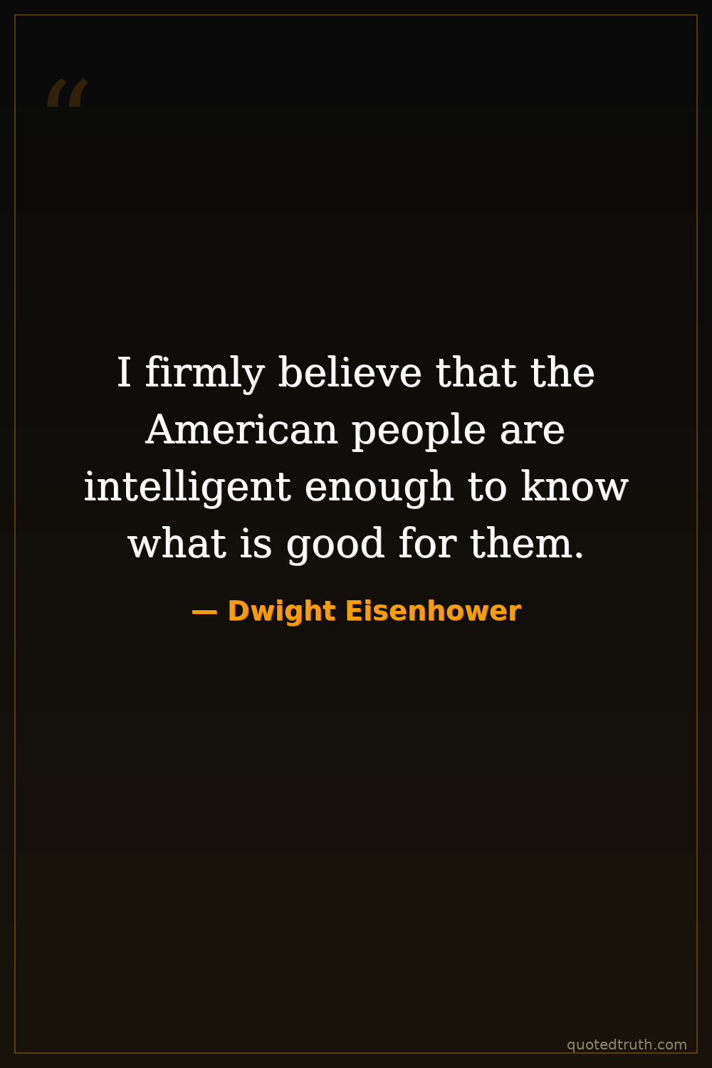 I firmly believe that the American people are intelligent enough to know what is good for them.