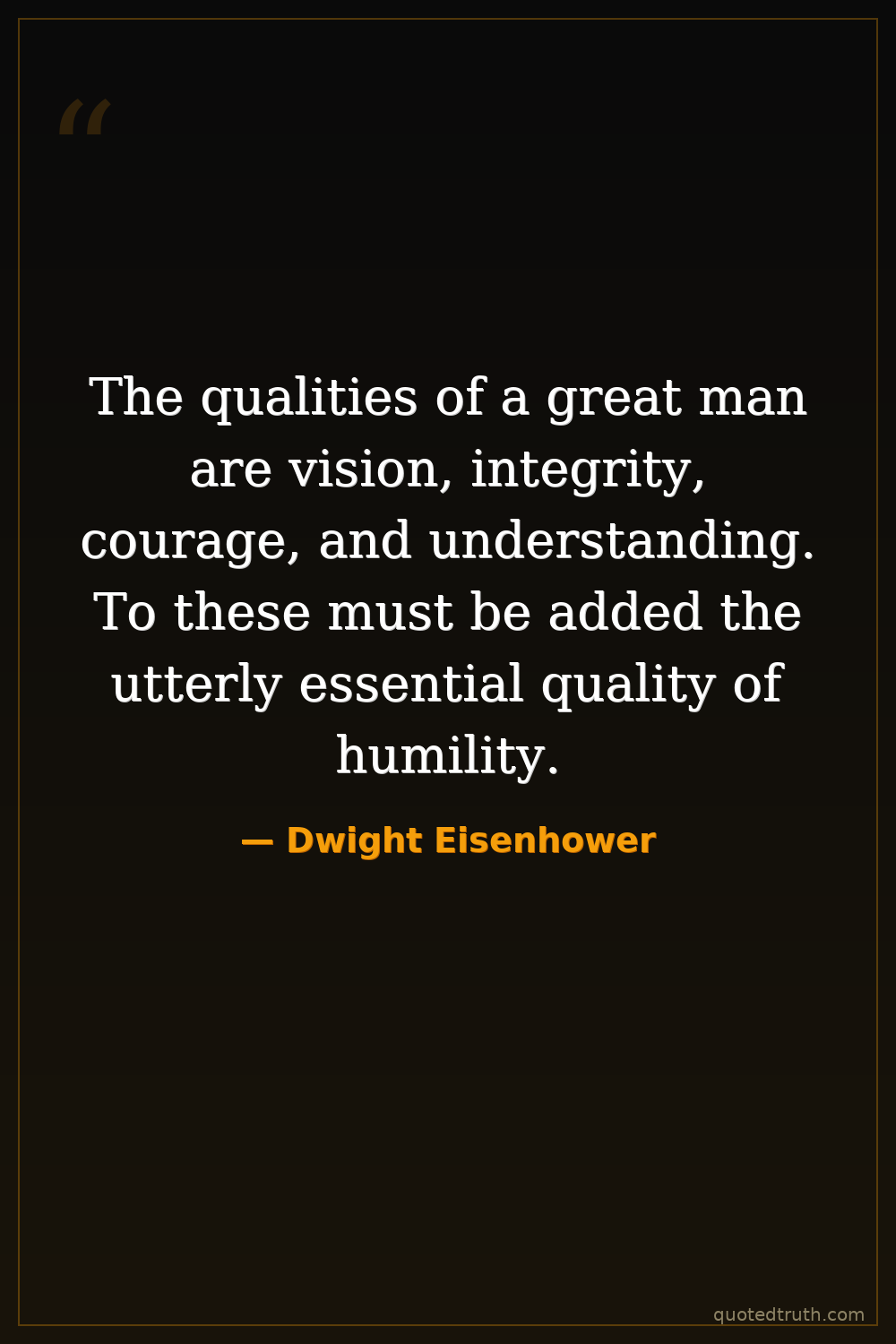 The qualities of a great man are vision, integrity, courage, and understanding. To these must be added the utterly essential quality of humility.