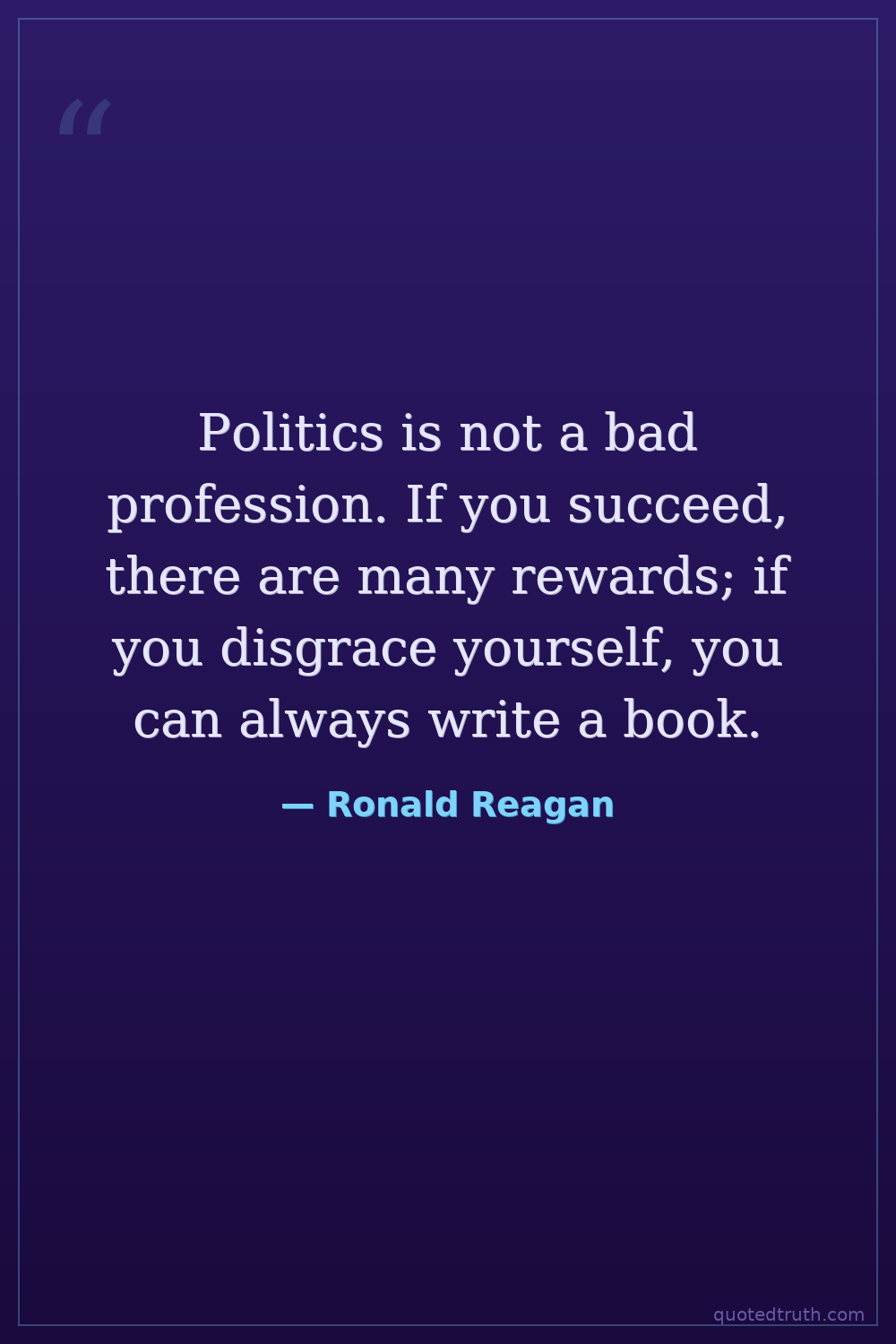 Politics is not a bad profession. If you succeed, there are many rewards; if you disgrace yourself, you can always write a book.