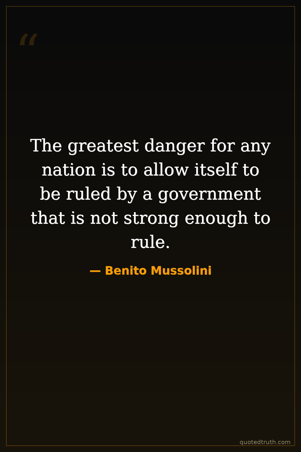 The greatest danger for any nation is to allow itself to be ruled by a government that is not strong enough to rule.