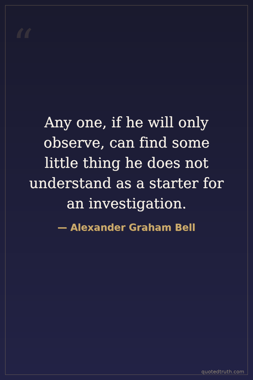 Any one, if he will only observe, can find some little thing he does not understand as a starter for an investigation.