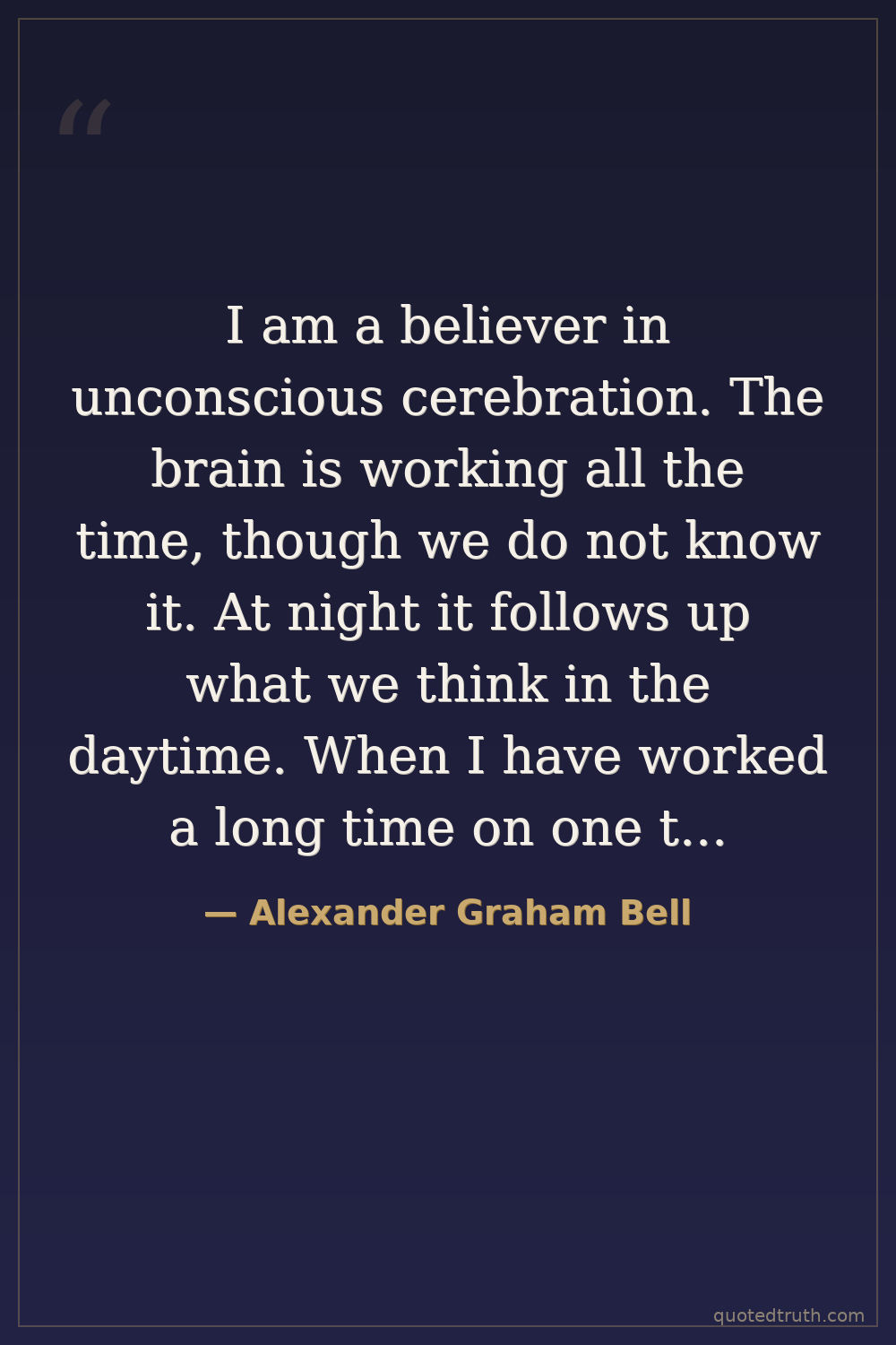 I am a believer in unconscious cerebration. The brain is working all the time, though we do not know it. At night it follows up what we think in the daytime. When I have worked a long time on one thing, I make it a point to bring all the facts regarding it together before I retire; I have often been surprised at the results... We are thinking all the time; it is impossible not to think.