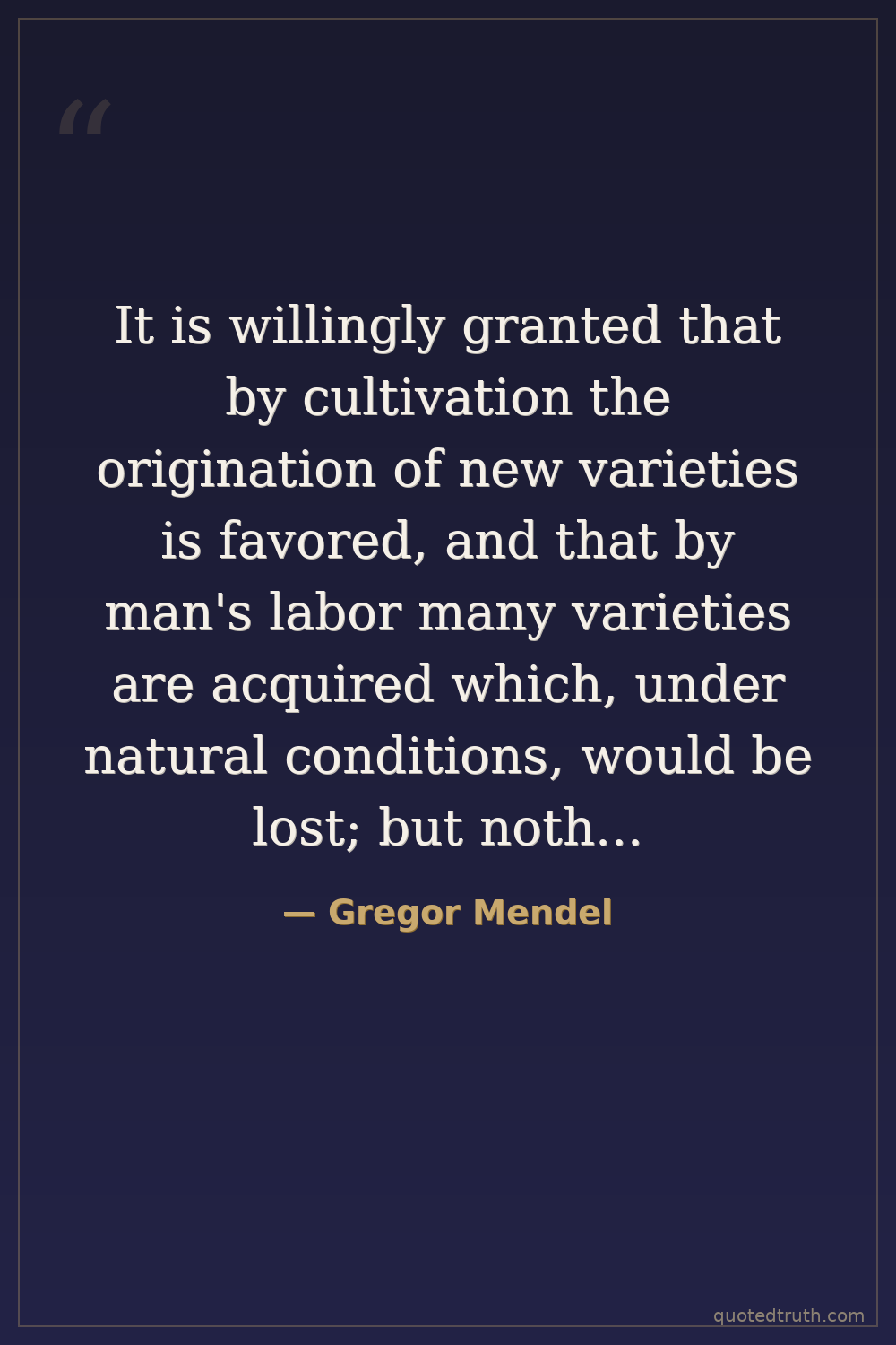 It is willingly granted that by cultivation the origination of new varieties is favored, and that by man's labor many varieties are acquired which, under natural conditions, would be lost; but nothing justifies the assumption that the tendency to formation of varieties is so extraordinarily increased that the species speedily lose all stability, and their offspring diverge into an endless series of extremely variable forms.