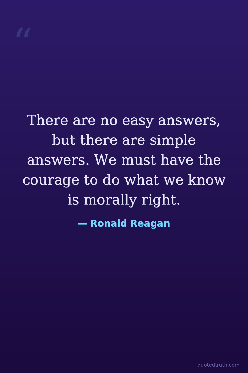 There are no easy answers, but there are simple answers. We must have the courage to do what we know is morally right.