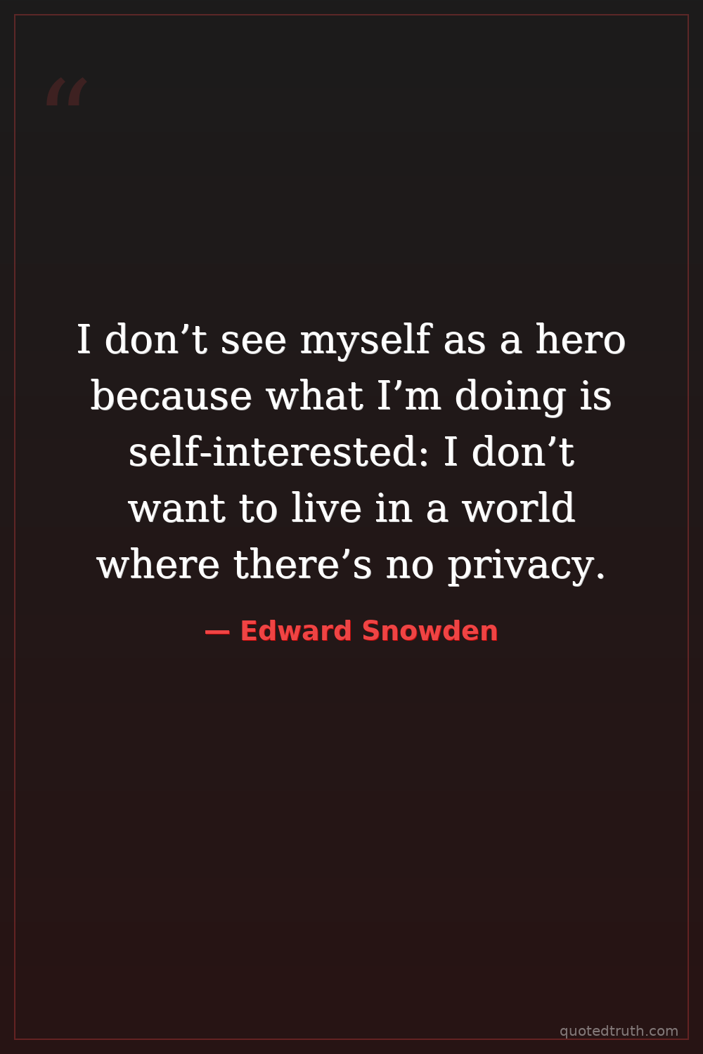 I don’t see myself as a hero because what I’m doing is self-interested: I don’t want to live in a world where there’s no privacy.