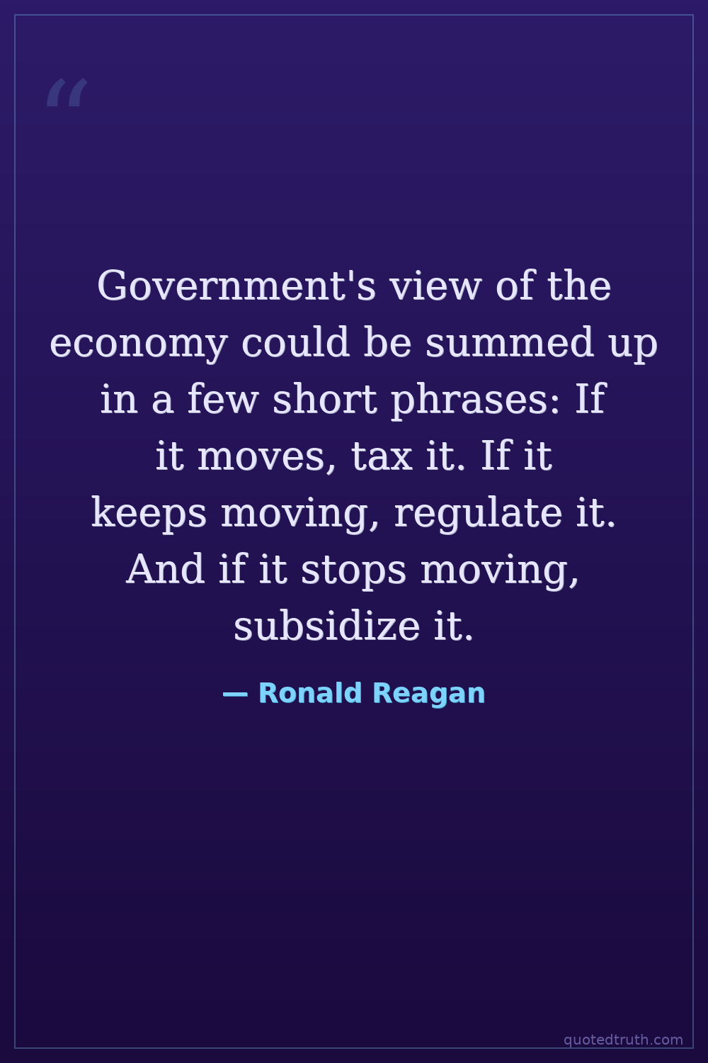 Government's view of the economy could be summed up in a few short phrases: If it moves, tax it. If it keeps moving, regulate it. And if it stops moving, subsidize it.