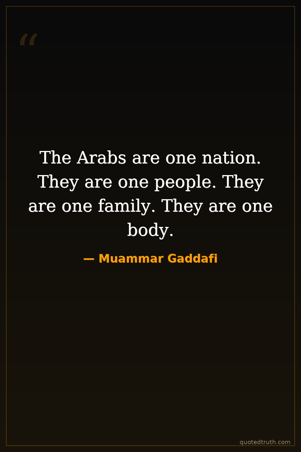 The Arabs are one nation. They are one people. They are one family. They are one body.
