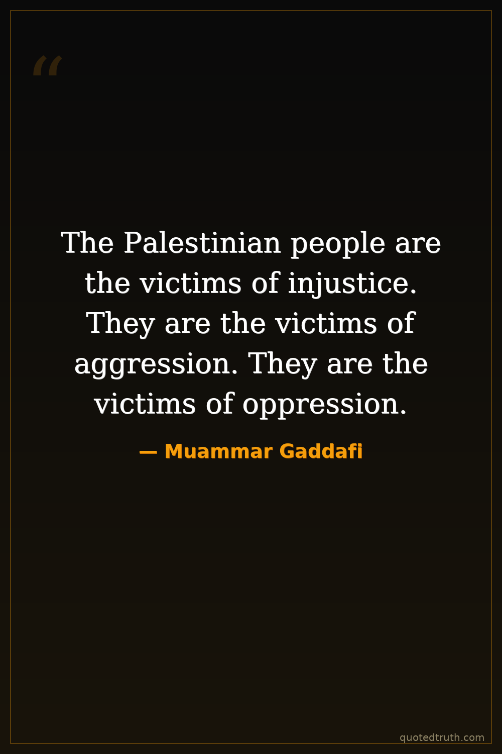 The Palestinian people are the victims of injustice. They are the victims of aggression. They are the victims of oppression.