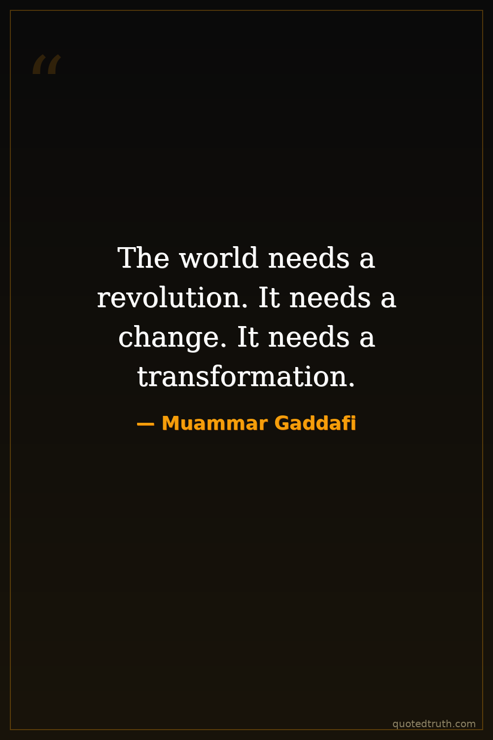 The world needs a revolution. It needs a change. It needs a transformation.
