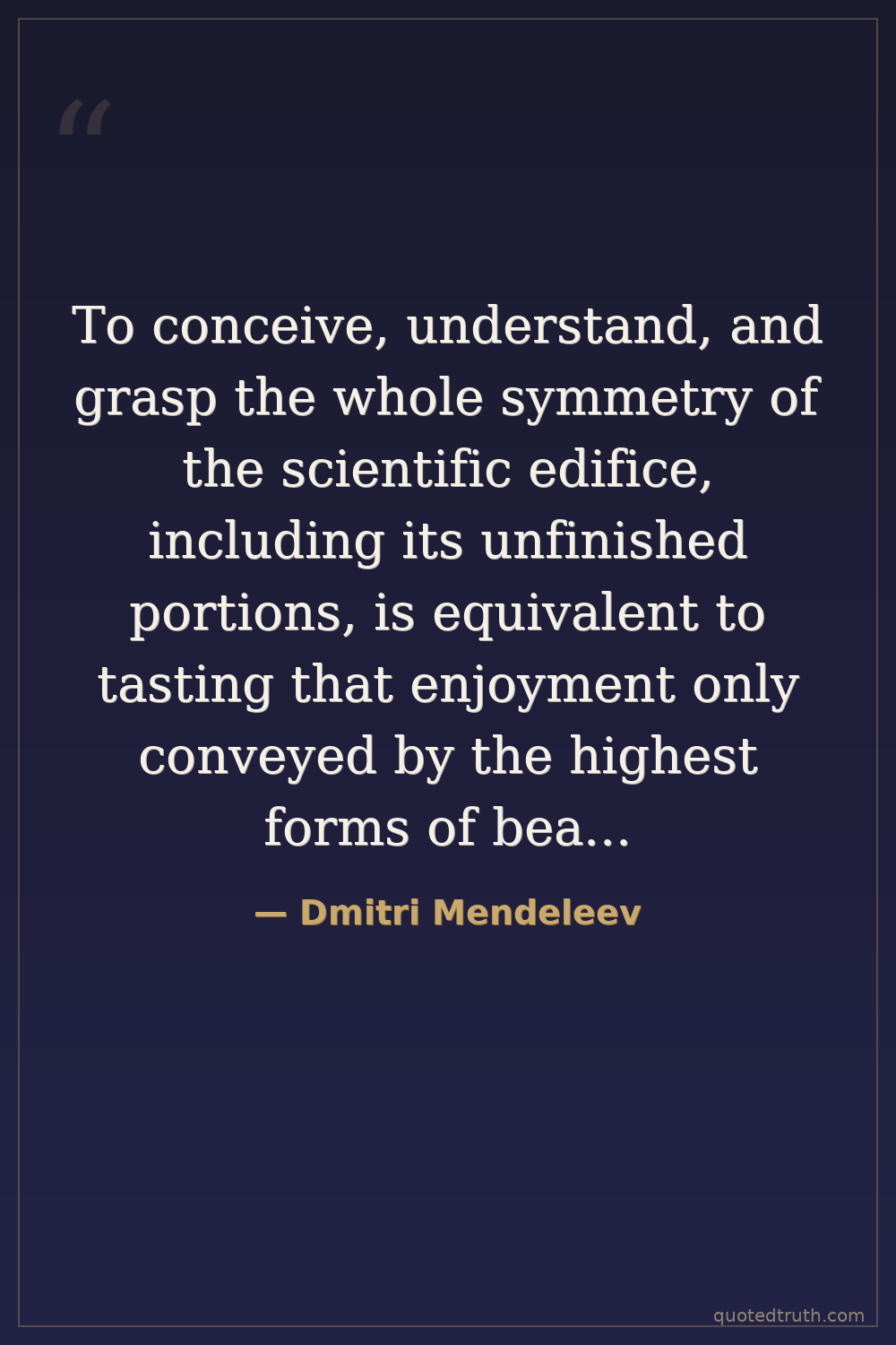 To conceive, understand, and grasp the whole symmetry of the scientific edifice, including its unfinished portions, is equivalent to tasting that enjoyment only conveyed by the highest forms of beauty and truth.