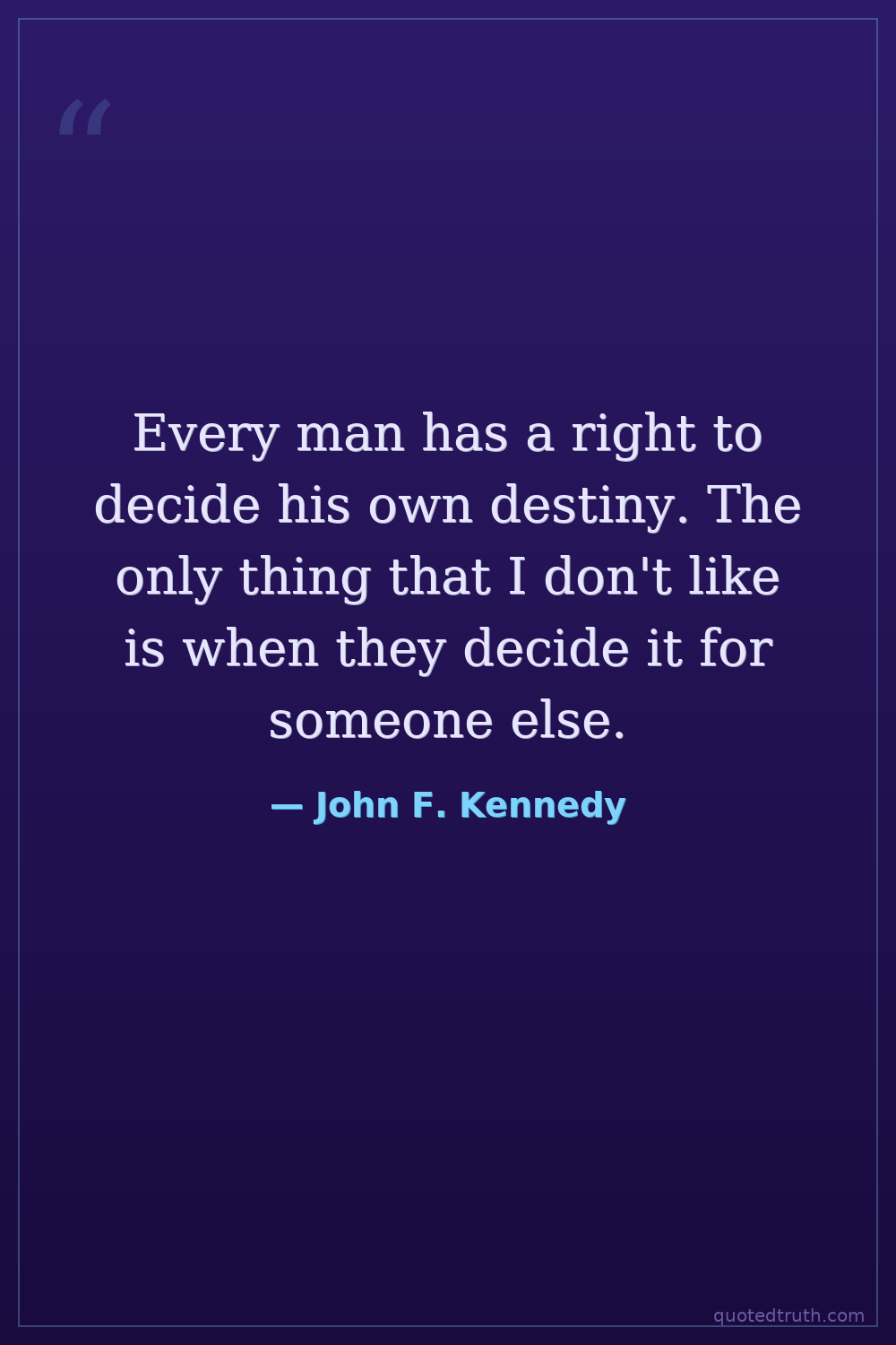 Every man has a right to decide his own destiny. The only thing that I don't like is when they decide it for someone else.