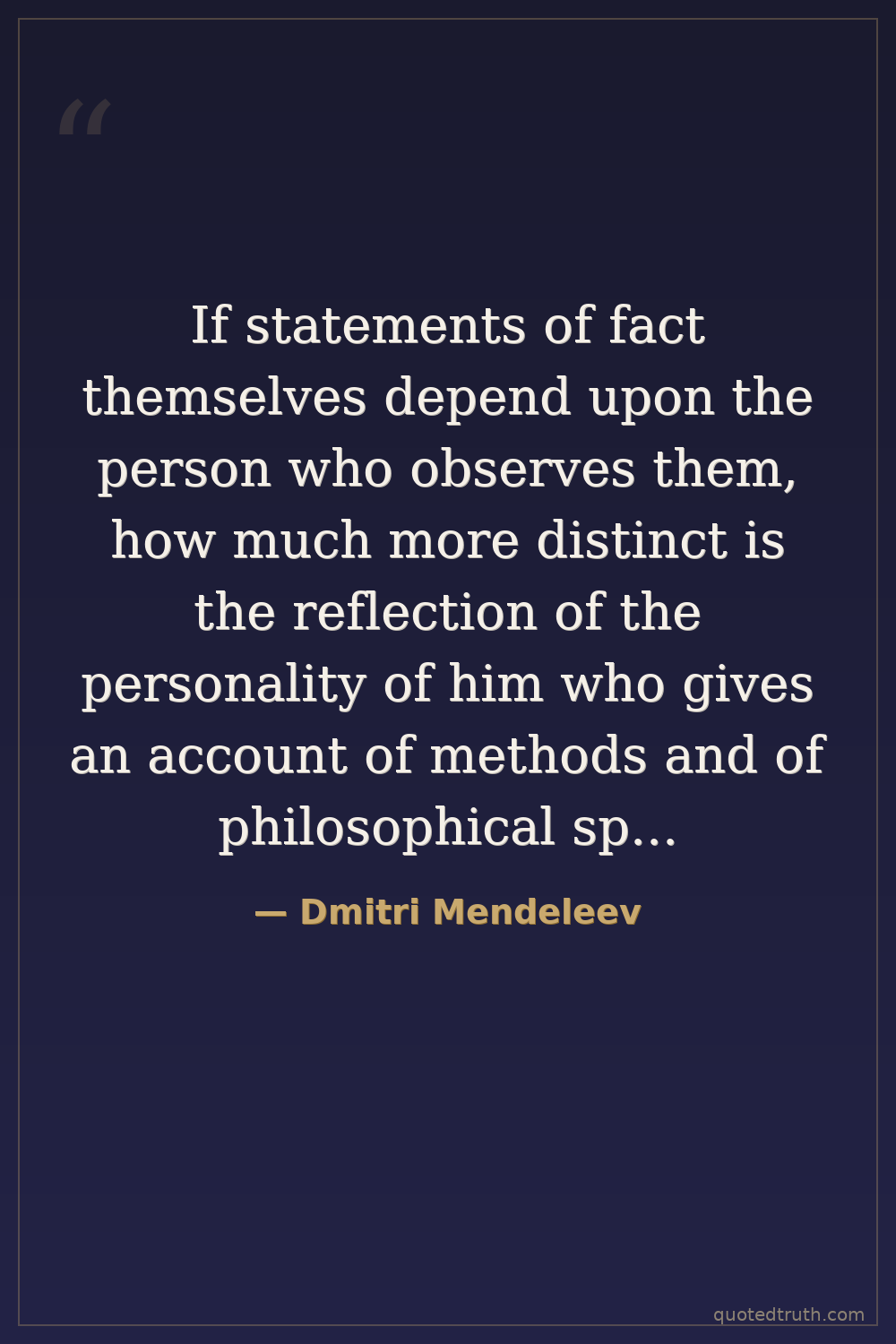 If statements of fact themselves depend upon the person who observes them, how much more distinct is the reflection of the personality of him who gives an account of methods and of philosophical speculations which form the essence of science!
