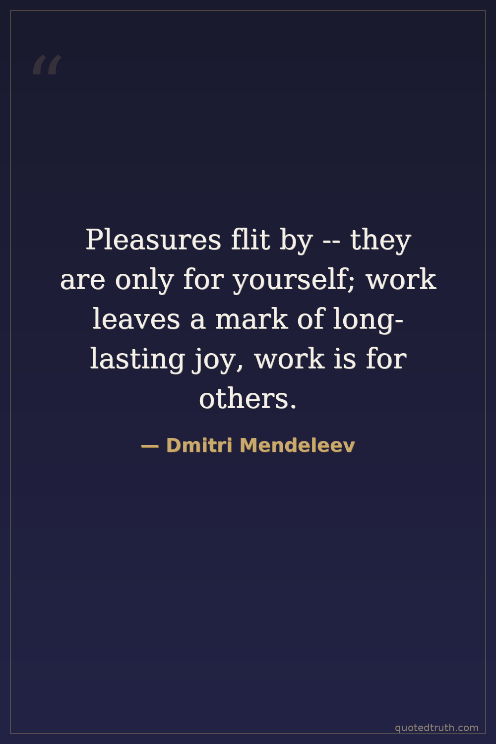 Pleasures flit by -- they are only for yourself; work leaves a mark of long-lasting joy, work is for others.
