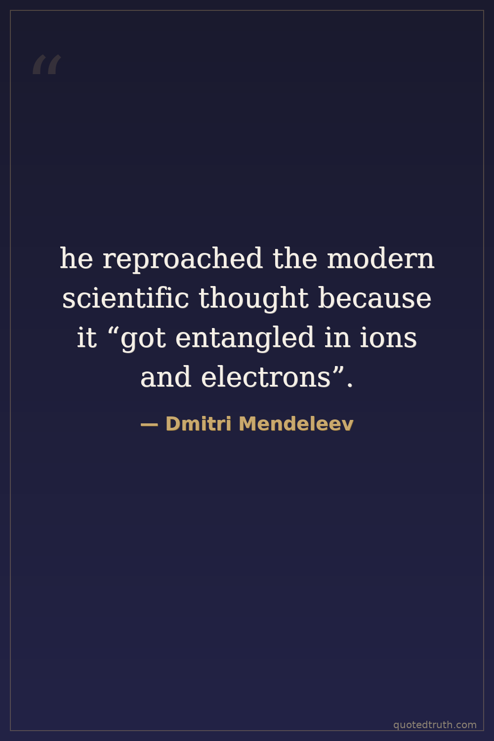 he reproached the modern scientific thought because it “got entangled in ions and electrons”.