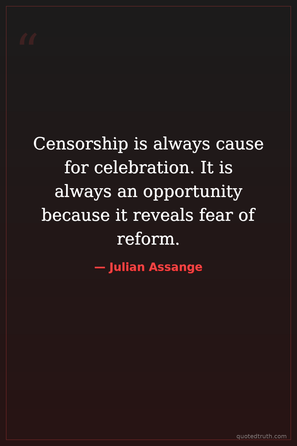Censorship is always cause for celebration. It is always an opportunity because it reveals fear of reform.